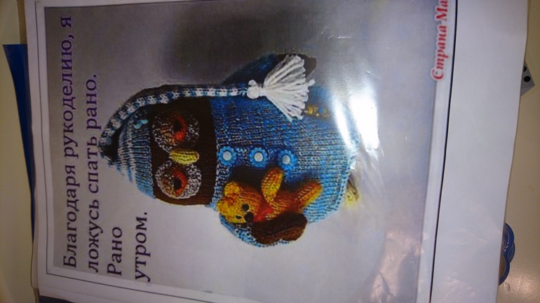 Там ещё милейшая надпись)) "благодаря рукоделию, ложусь рано.. Рано утром.."))) спасибо огромное за тёплые слова! Рада что шапули пора!))