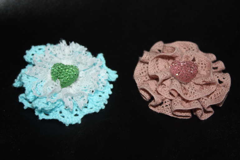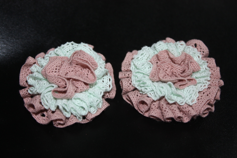 Цветы из ткани и форма. Канзаши. Украшения для волос.Летом на даче захотелось сделать один цветочек из цветного хлопкового кружева и потом понеслооооось.... ))) И вот результат. Пришивала их к фетровой круглой основе. Серединки крепила на клеевой пистолет. На некоторые цветочки уходило более 2 метров кружева )))) Делала их для дочки на заколочки, резиночки, ободки. Сейчас ей всего 5 мес., поэтому нам все это рано еще. Но вот подрастет, я пойму что ей лучше (заколочки или резиночки) и тогда уже эти цветочки и прикреплю. И будем потом по пол часа выбирать... какой же цветочек нам сегодня выгулять ))))