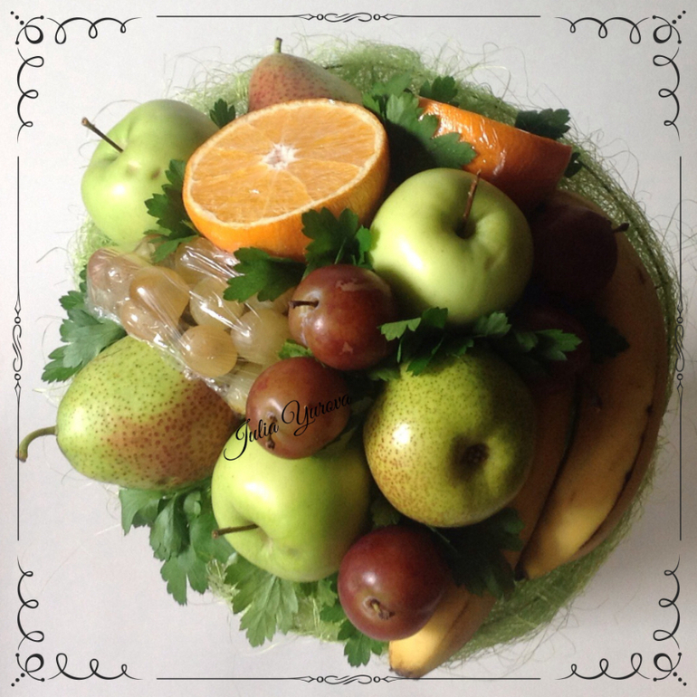 Ну и фруктовый десерт. Уже третий мой букет для актера театра и кино (эх, закормим мы его с дарительницей))))
