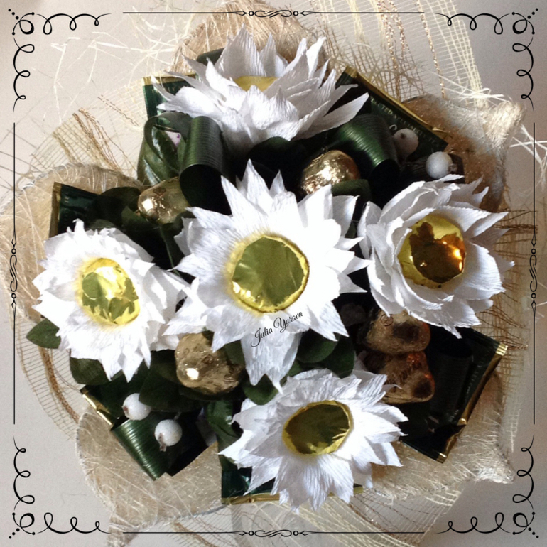 Юль, приветик! Красиво и разнообразно! Только белые подсолнуха меня несколько смутили ...