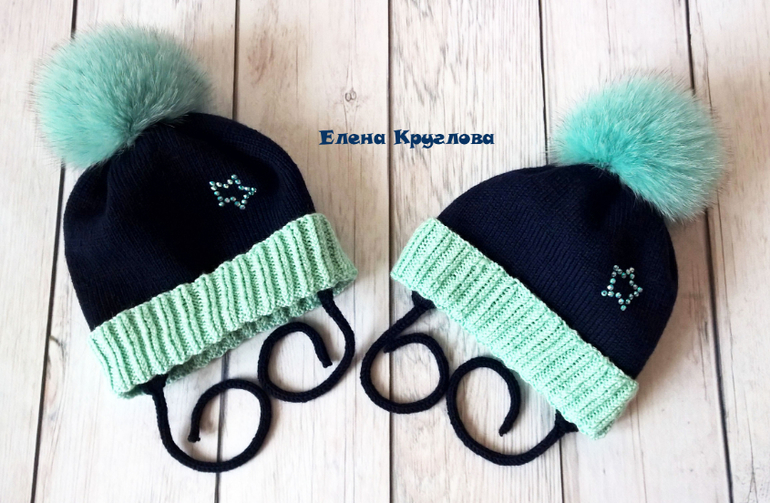 Машинная вязка (РАБОТЫ И СХЕМЫ)Связались на обмен еще одни шапочки двойняшкам, на этот раз для Анны и ее мальчишек. Пряжа 100% шерсть, мятная - Ализе беби вул. Помпоны из натурального меха.
