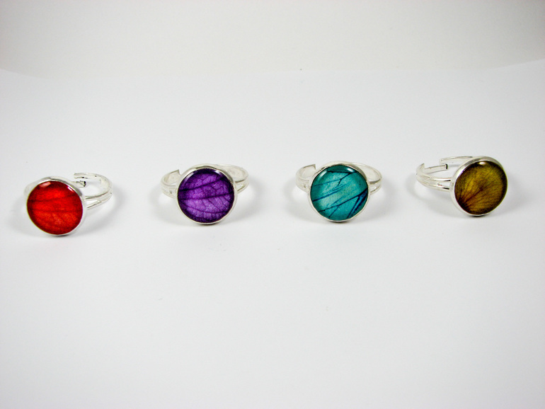 PS Колечки сделаны из эпоксидной смолы, внутри картинки - рисунок лепестков цветов, в голубом - рисунок крыла бабочки.