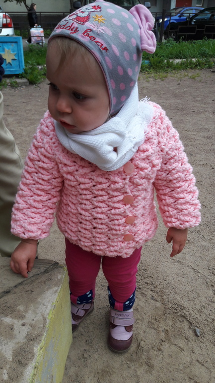 Вязание крючком (РАБОТЫ И СХЕМЫ)Связалось такое пальто для дочи. Изначально хотела подлиннее, но ниток не хватило, подумала, что и так хорошо и не стала покупать еще.