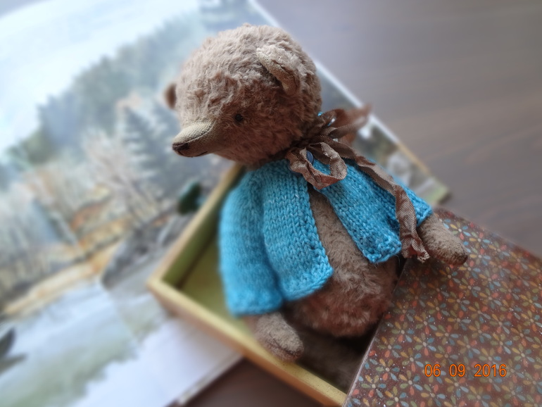 Тедди: мишки и их друзья.Так назвал сынок. Сшит из вискозы ручного окраса. Внутри опилки и металлический гранулят. Ростик 19см. 6 шплинтов голова покачивается. Сидит уверенно,стоит с поддержкой. Одет мишутка в вязанную кофточку,украшен шебби лентой. Мишутка сшит полностью вручную)).