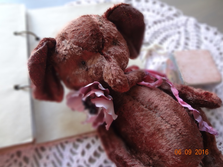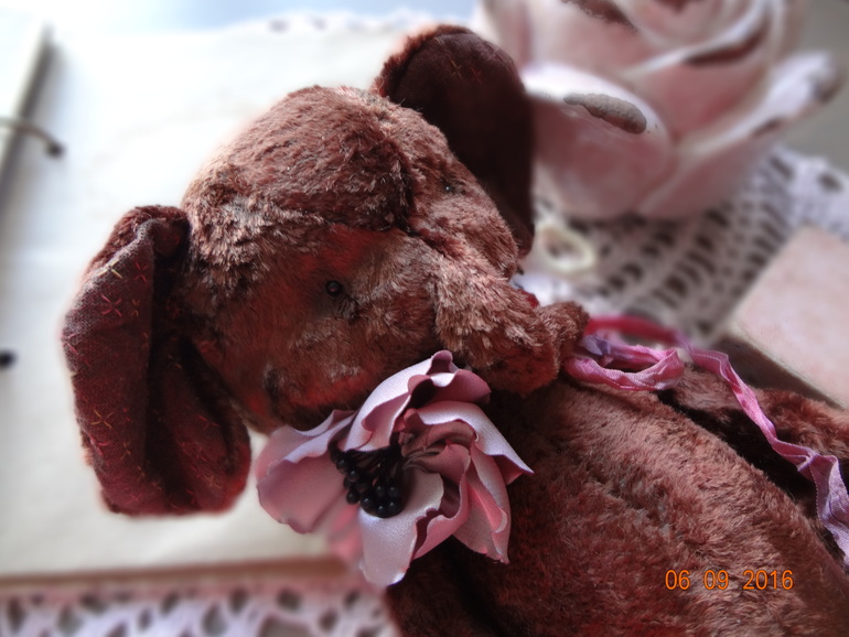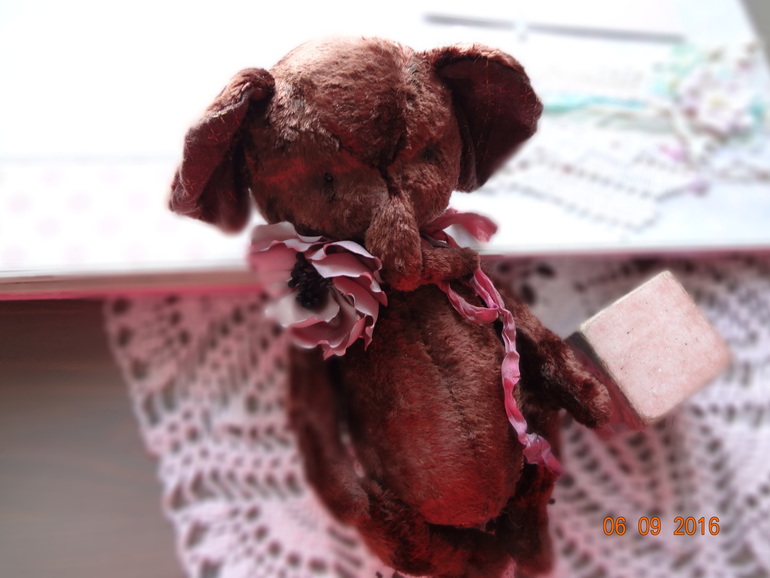 Тедди: мишки и их друзья.Слоник тедди сшит из винтажного плюша ручной окраски. Ростик 22см. Набит плотненько опилочками и металлическим гранулятом. 6 шплинтов,голова покачивается. Украшен слоник цветком ручной работы и шебби ленточкой ручного окраса. Сидит уверенно,стоит с поддержкой. Сшит слоник полностью вручную,с большой любовью и теплом.