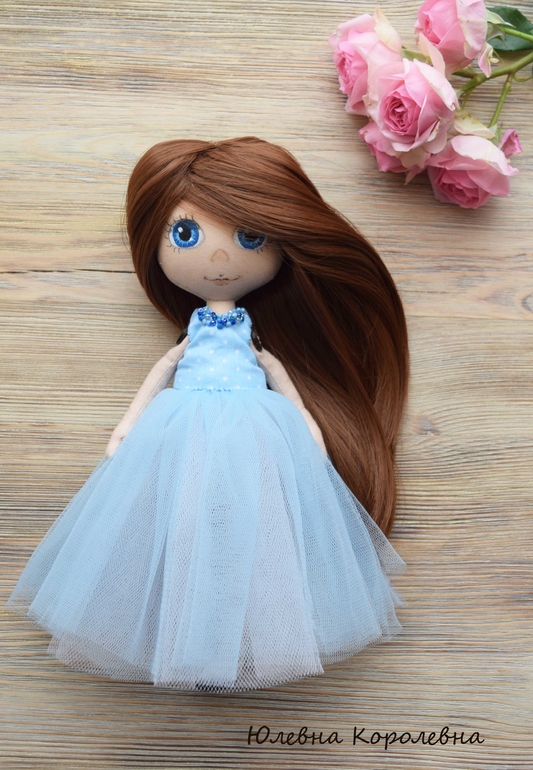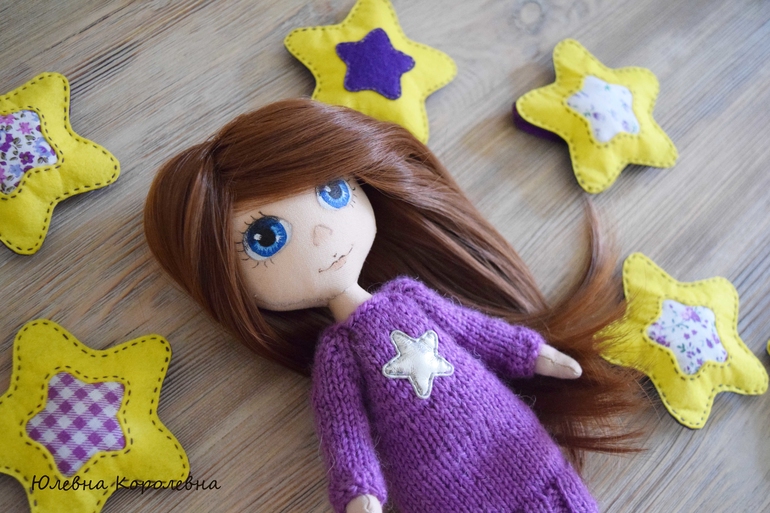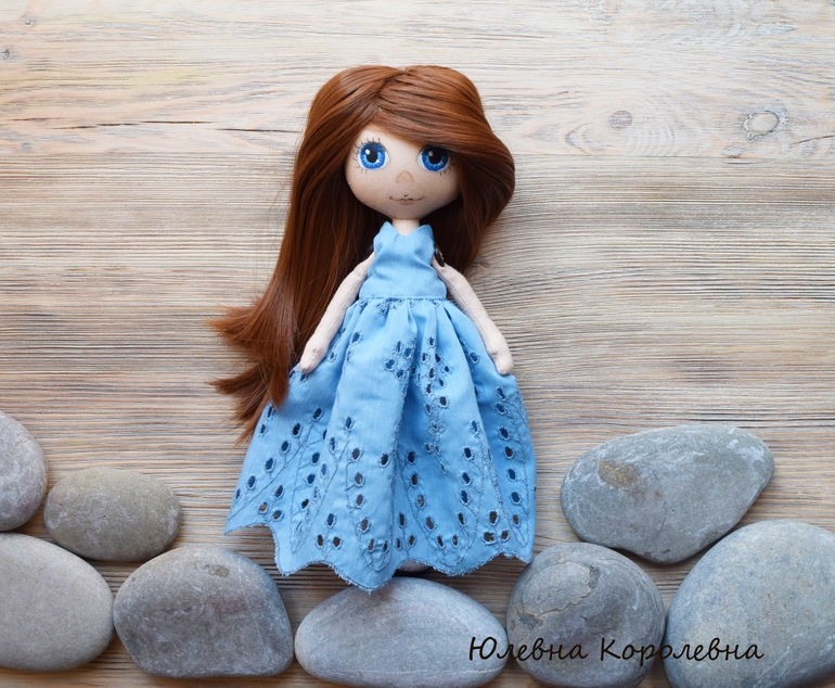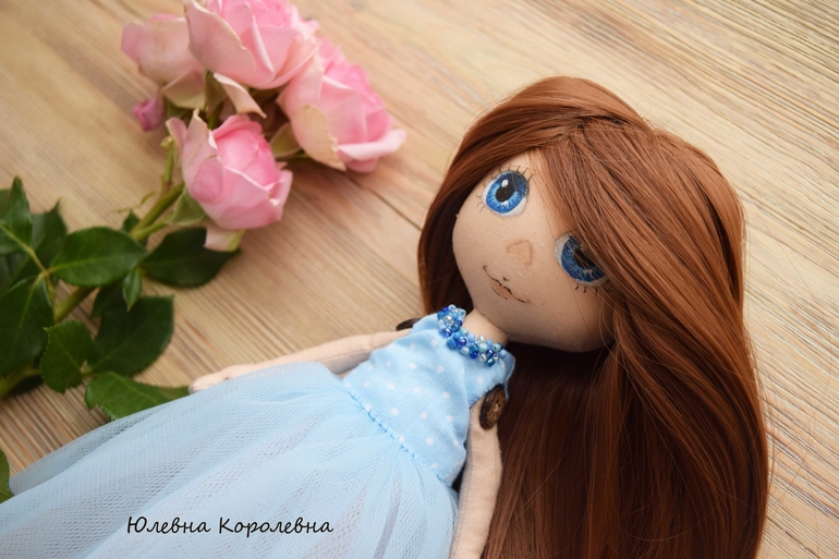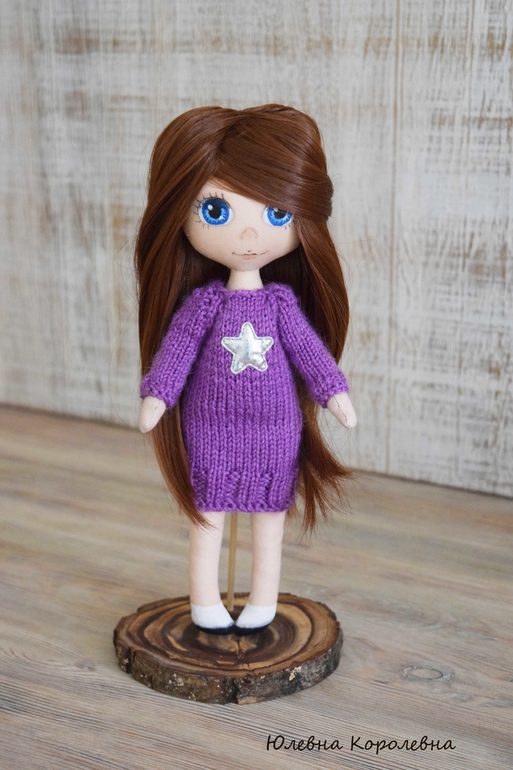Интерьерная текстильная куколка Алиса, около 23см ростом, стоит на подставке, не сидит. Платьица снимаются, малышку можно переодевать. Под катом много фото.