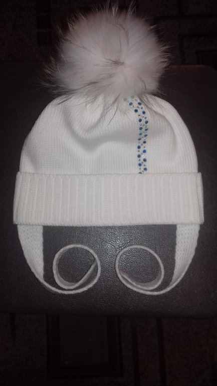 Нежная красивая шапочка на холодную осень-зиму. Состав 100 % меринос Италии, стразы.