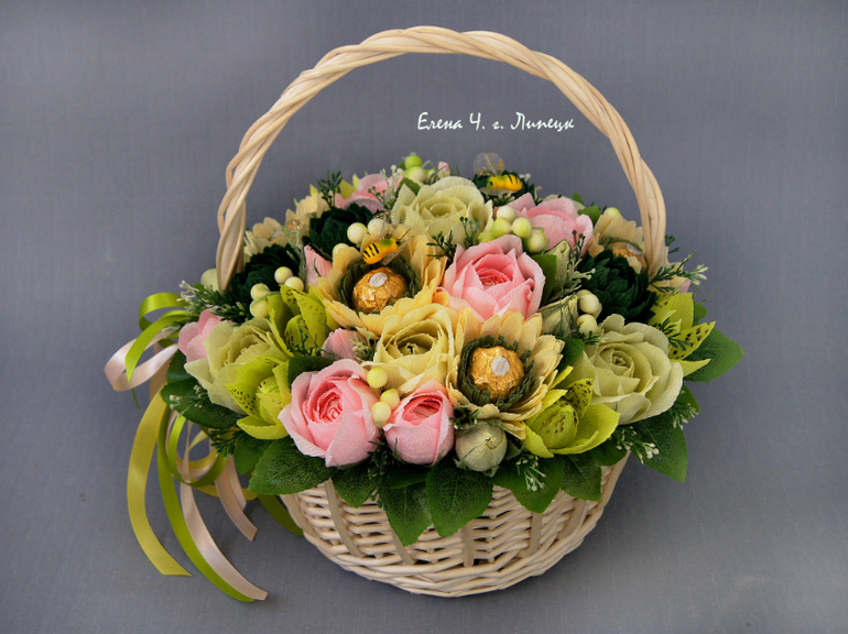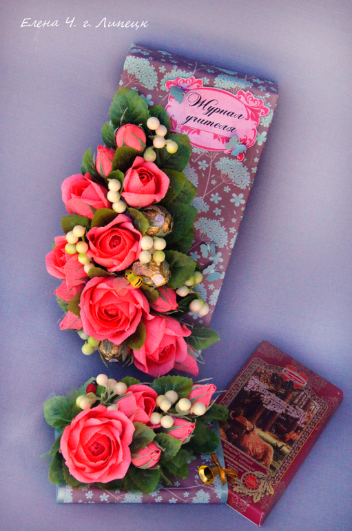 Букеты из конфет. Свитдизайн.Продолжаю подготовку ко Дню учителя. Журналы и корзинка, правда совсем не осенняя. Под катом больше 5 фото.