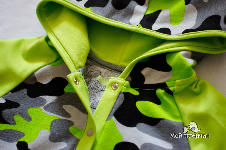 Вместо удлинённой молнии сделала кнопки на планке, добавила карман "кенгуру".