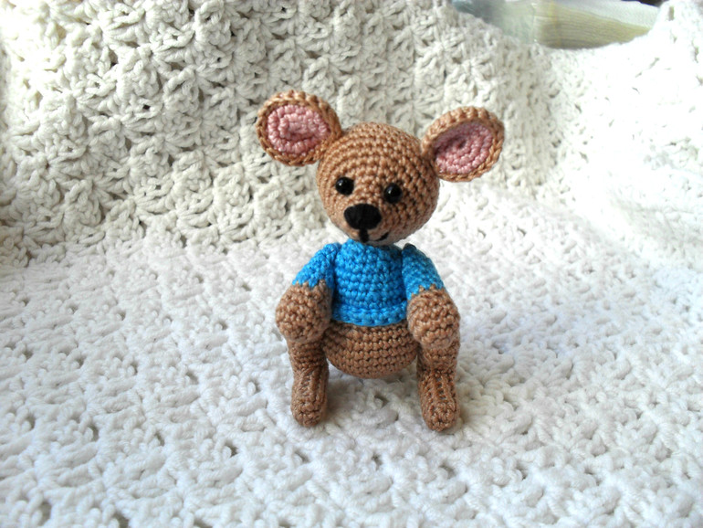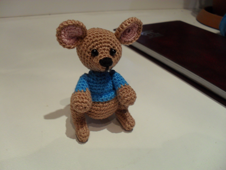 Амигуруми (вязаные игрушки)Малыш кенгуру. Вот такой гибрид получился что-то между оригинальным кенгуру и диснеевским Крошкой РУ. Связан из 100% хлопка.