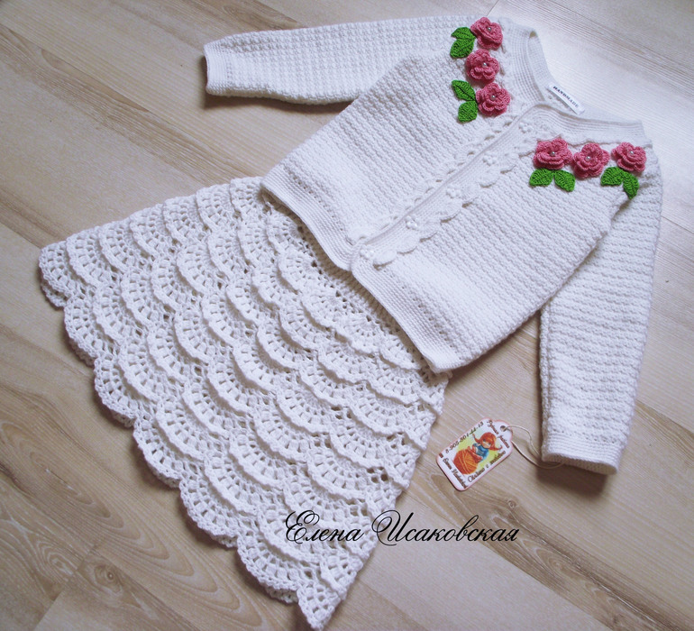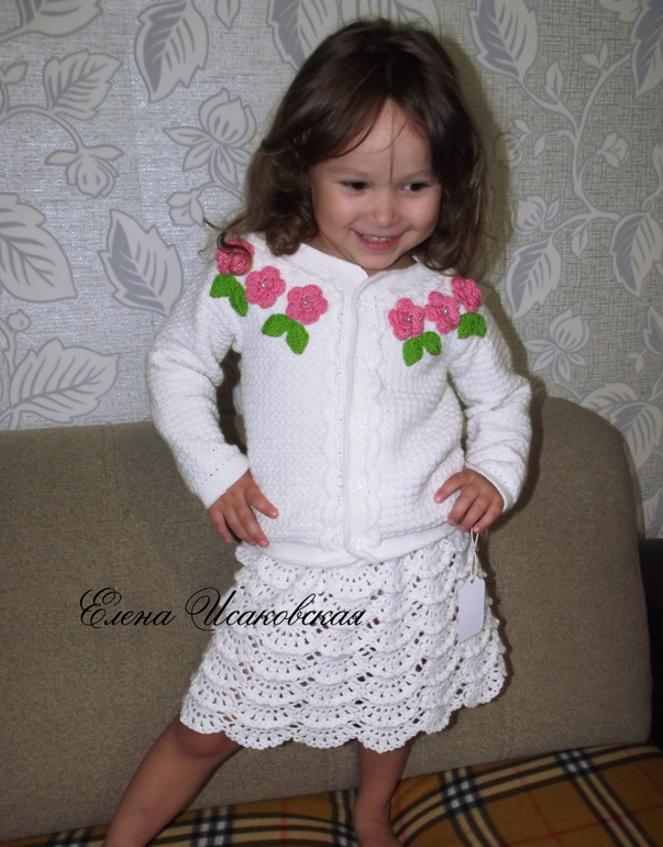 Вязание крючком (РАБОТЫ И СХЕМЫ)Костюм для девочки, связан по мотивам работ EVA CROCHET. Пряжу использовала Детский каприз от Пехорки, крючок №3. Ушло 6 молных мотков и чуть-чуть от 7 мотка на рост примерно 104 см.