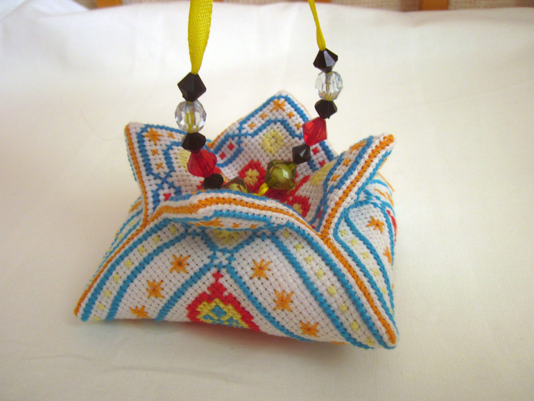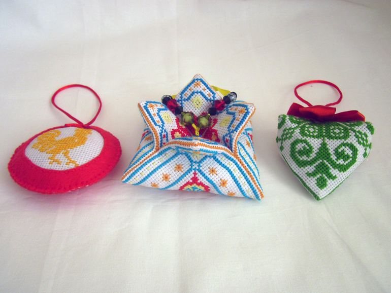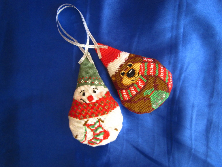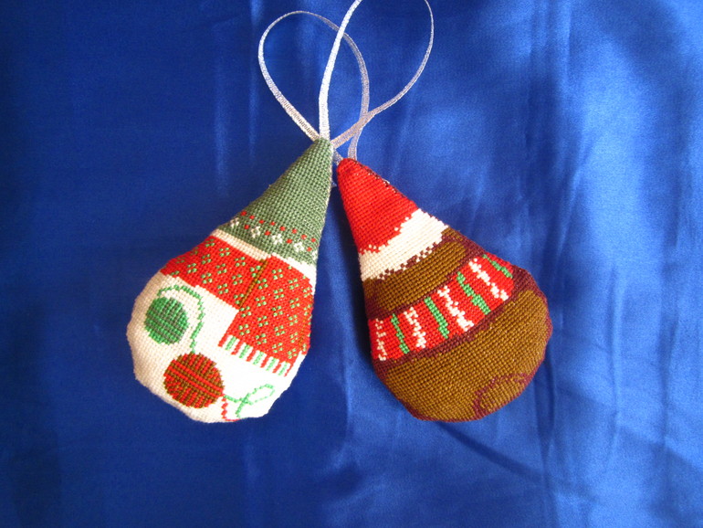 Вышивка картин. Крестиком, гладью, бисером, стразами, лентами, схемы по вышивкам, процессыИ еще одна порция новогоднего настроения! Засматривалась на эти игрушки еще в прошлом году, но времени не хватило, и вот теперь наверстываю. Очень удачный способ применить маленькие обрезки, нитки подбирала из тех, что были дома.