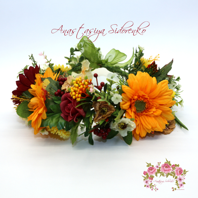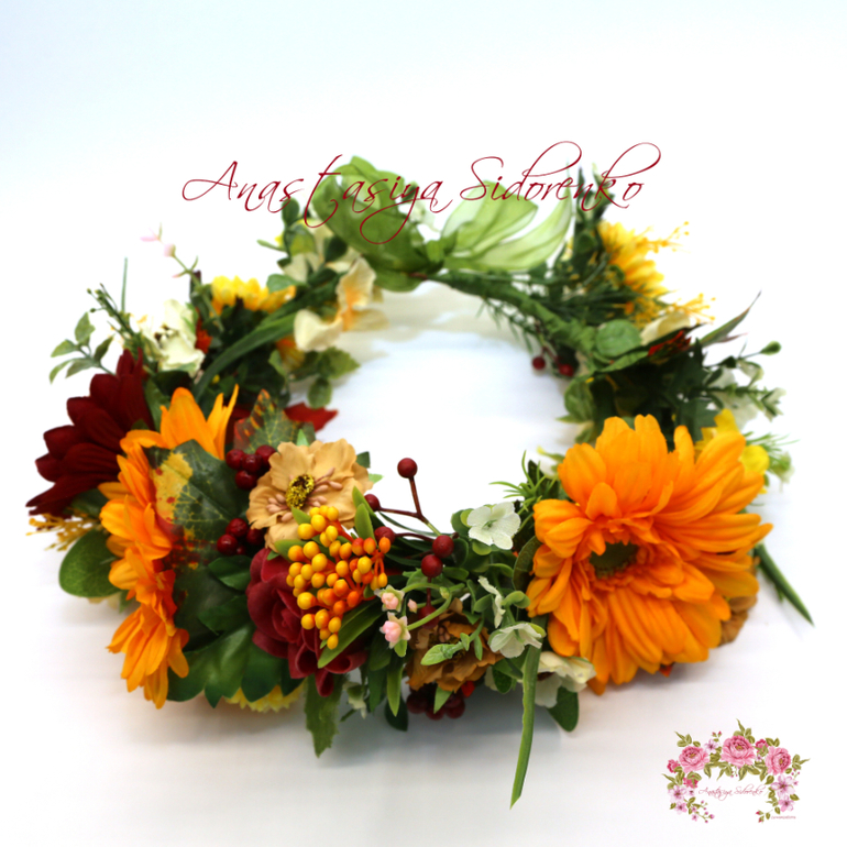 На днях делала венок в осенней тематике. Получилось очень празднично и по осеннему ярко)))