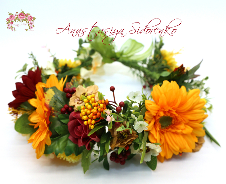 Цветы из ткани и форма. Канзаши. Украшения для волос.На днях делала венок в осенней тематике. Получилось очень празднично и по осеннему ярко)))