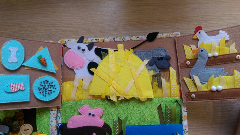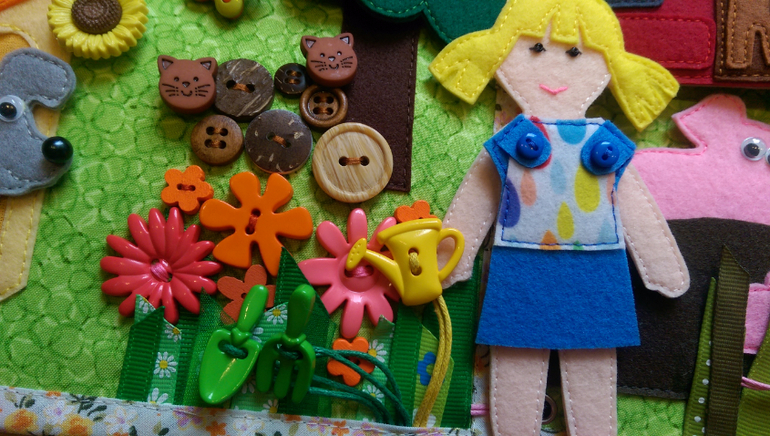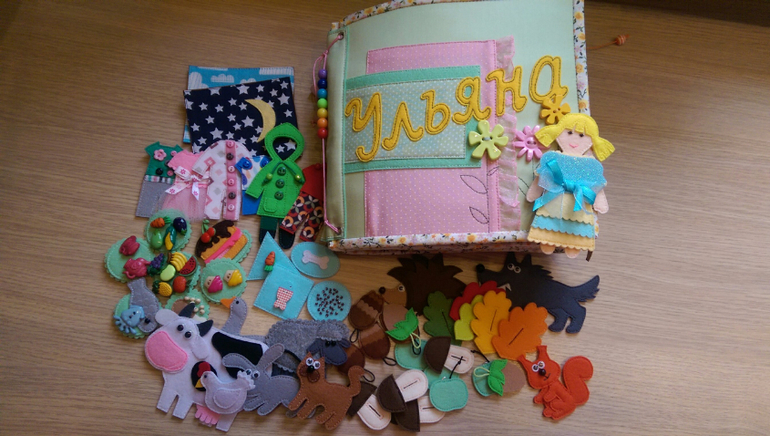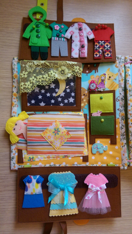 Развивающие игрушкиВ книжке живет куколка, у которой есть своя спальная, огромный гардероб, игровая, кухня, а еще домашние животные и лесные. Много разных заданий, на развитие логики, мелкой моторики, а так же изучаем окружающий мир и много-много сюрпризов... далее много фото.