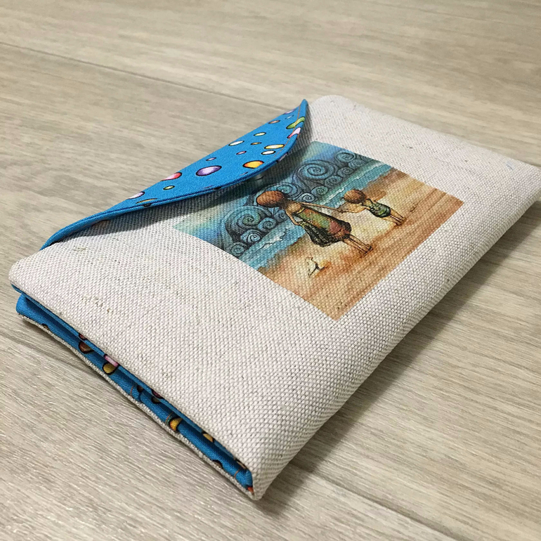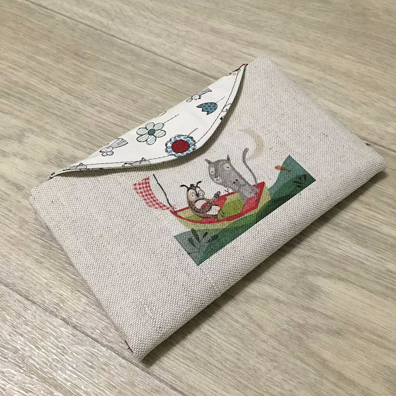 Два голубеньких холдера из одной ткани, с разными картинками