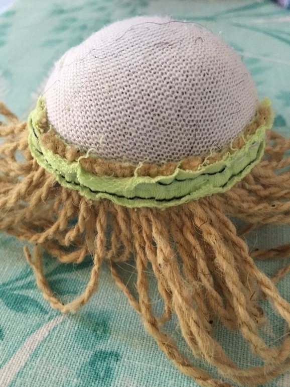 Отрезала лишнее от ткани, но длину волос пока не трогала. Паричок пришила к голове.
