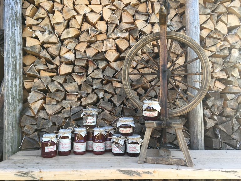 В этом году у нас был большой урожай вишни: закатали компоты, варили варенье, как с косточкой, так и без косточек, заморозили в свежем виде, ещё и соус вишневый сделала, который к мясу пришёлся по вкусу всем. На фото небольшая часть заготовок.