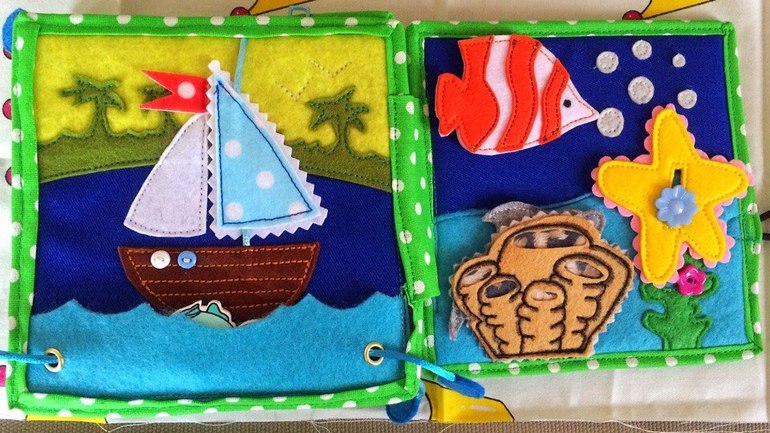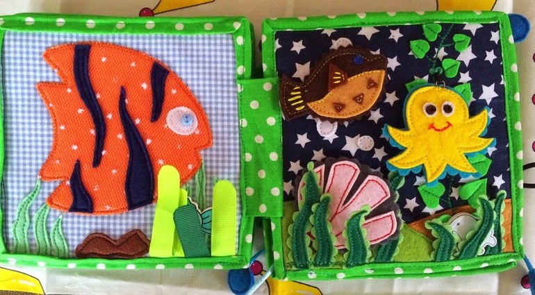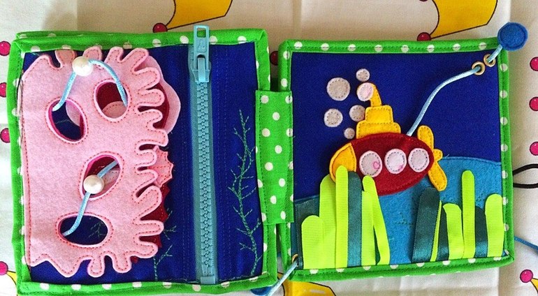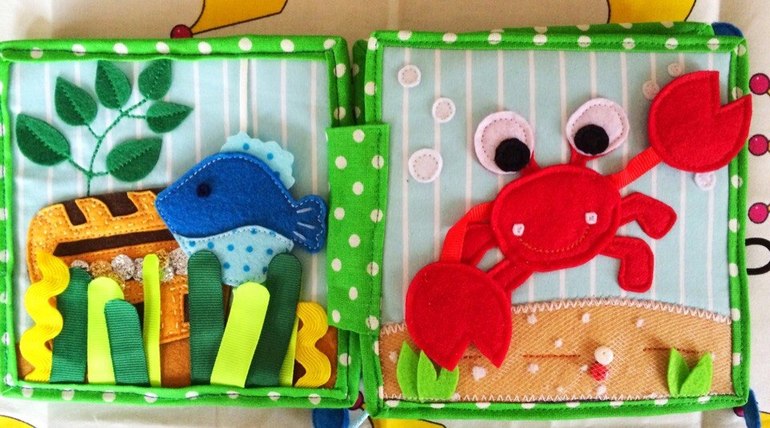 Развивающие игрушкиУчаствовала в совместном пошиве с девочками Юлией и Катериной. И получилась у меня такая чудесная развивающая книжечка из фетра. Сейчас она живет в Вологде у семимесячной Полины. И крабик - это её любимый персонаж. А подробности под cut. Кстати, много фотографий. Книжечка именная, так захотела мама.