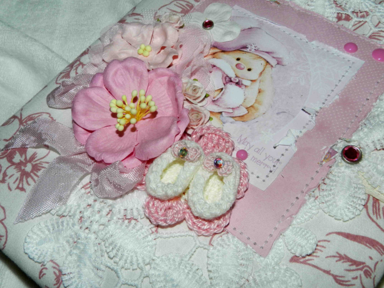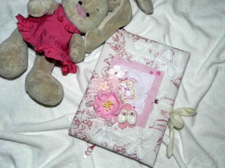 СкрапбукингДоброго дня! Спешу показать нежнейший бебибук для Девочки! Розовый, зефирный, в кружевах, цветочках, с вязанными пинеточками, акриловой сосочкой. Нежность! Дабы внести немножко тепла в осенние серые дни. Смотрите!Под катом много фото и описание!