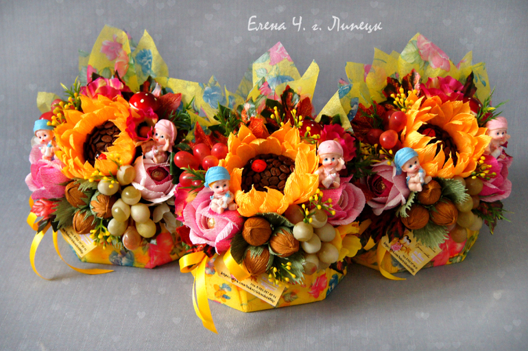 Букеты из конфет. Свитдизайн.Под катом более 5 фото. Коробочки с малышами ко дню воспитателя, журнальчик и шоколад. Кому интересно, прошу под кат.