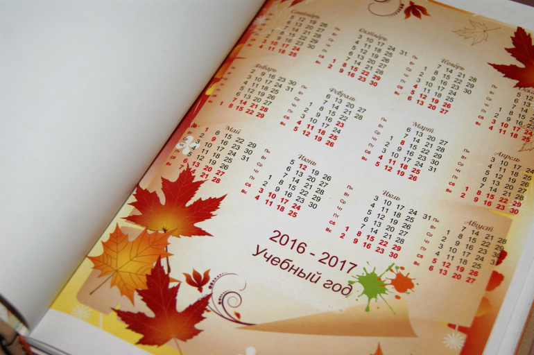 Блок внутри одинаковый у всех трех блокнотов.Половина листов в клетку,половина в линию.И первая страничка календарь на учебный год.