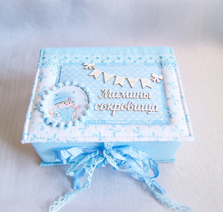 Мамины сокровища для малыша 🎁 Девочки, у меня сокровищницы выполнены только из плотного 2 мм переплётного картона, обтянутого тканью и задекорированно скрап бумагой. Такие коробочки очень прочные и долговечные👑