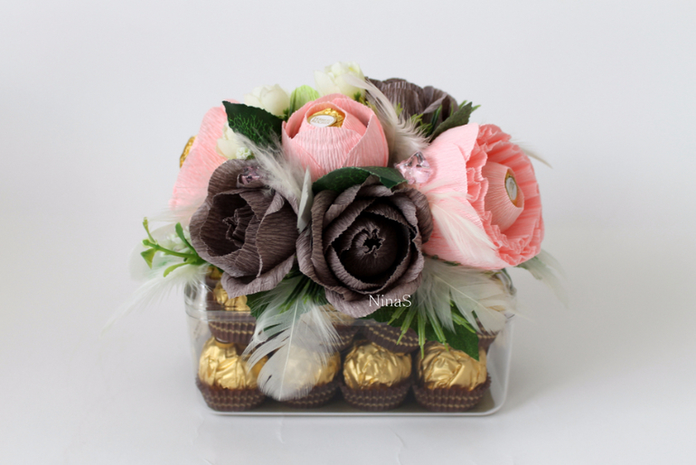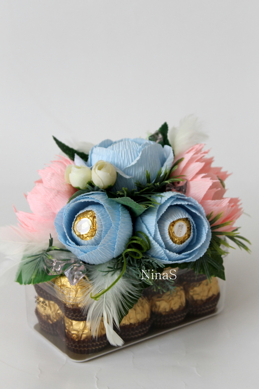 Букеты из конфет. Свитдизайн.Сейчас пора горячая, у дню учителя готовлюсь. Но вот появилось желание показать кое-что из недавнего до-праздничного. Для вдохновения так сказать. Две коробочки сестрички для сестричек.