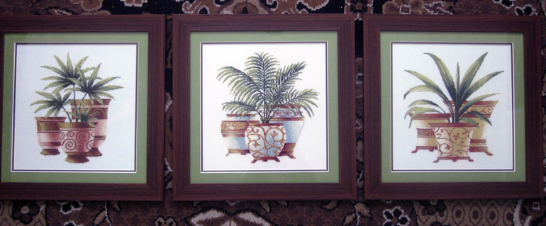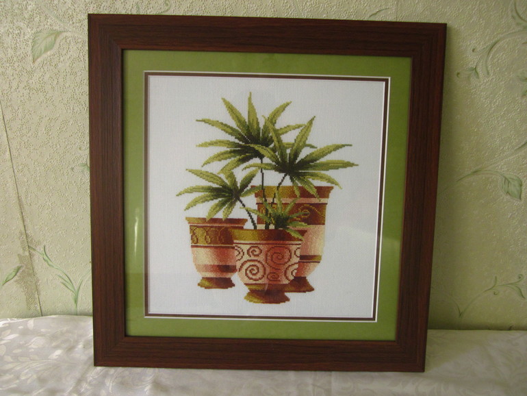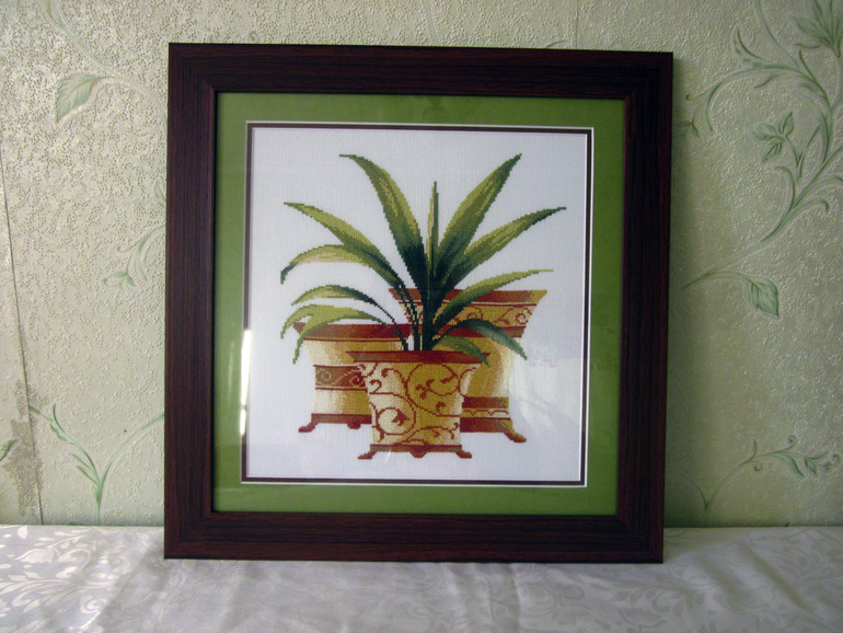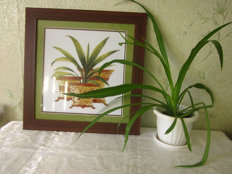Вышивка картин. Крестиком, гладью, бисером, стразами, лентами, схемы по вышивкам, процессыВот наконец оформила свои пальмы! Сырые вышивки показывала тут, тут и тут. Лежали они больше полугода ожидая свой багет. Ну уж никак не хватало на них средств...Теперь нужно только повесить на стену(еще думаю на какую именно, точнее стену я выбрала давно, но муж говорит, что в ней проходят провода, и можно его нечаянно зацепить), в любом случае перфоратор дома есть)))Итак начнем. Первая - юкка