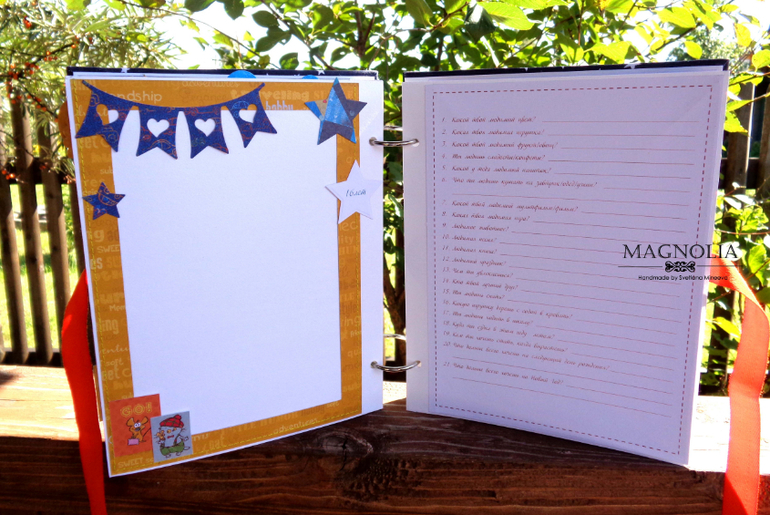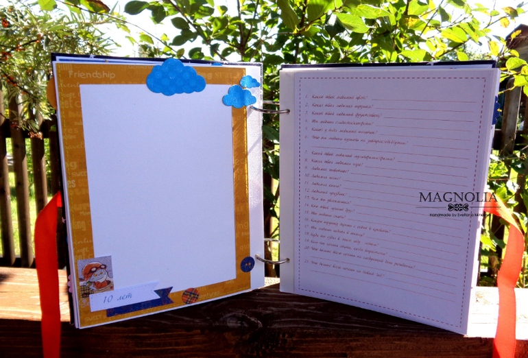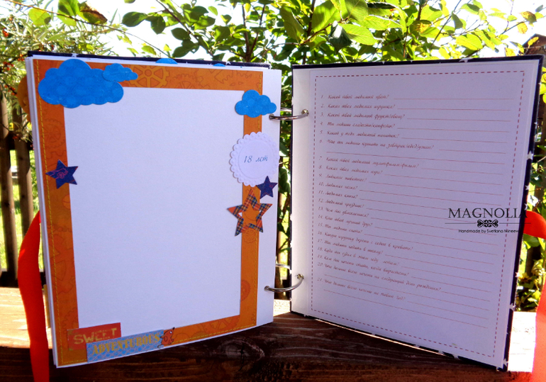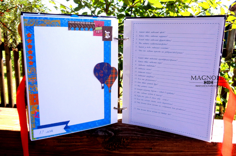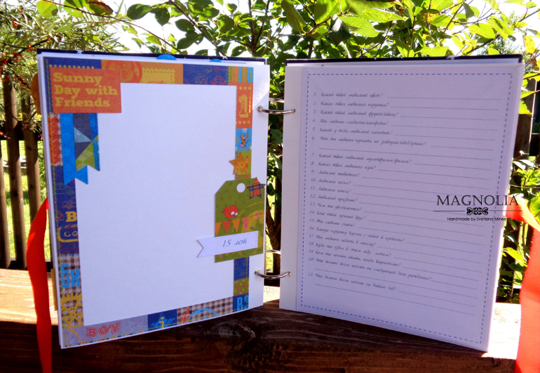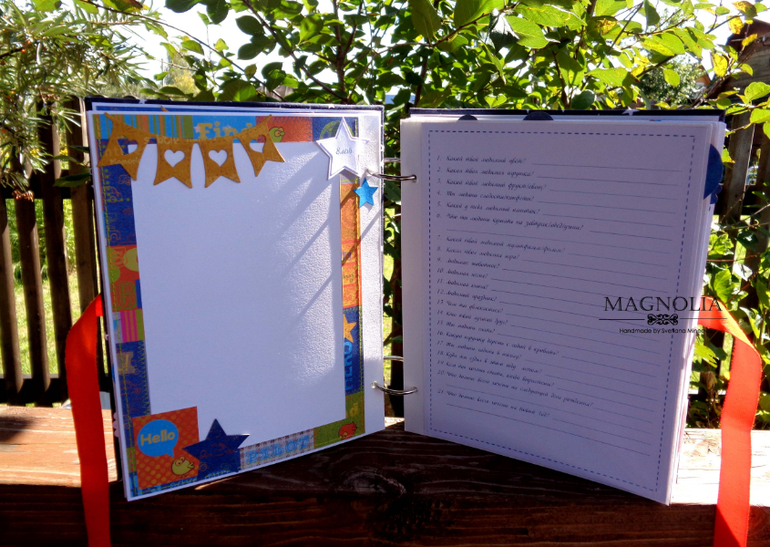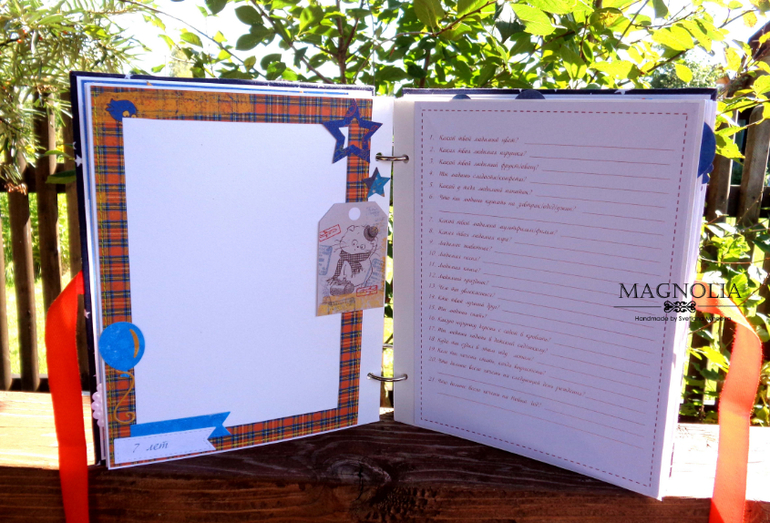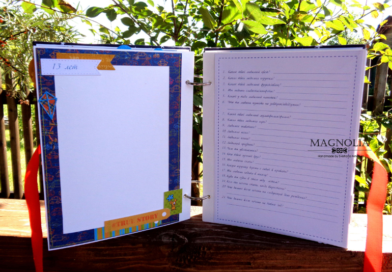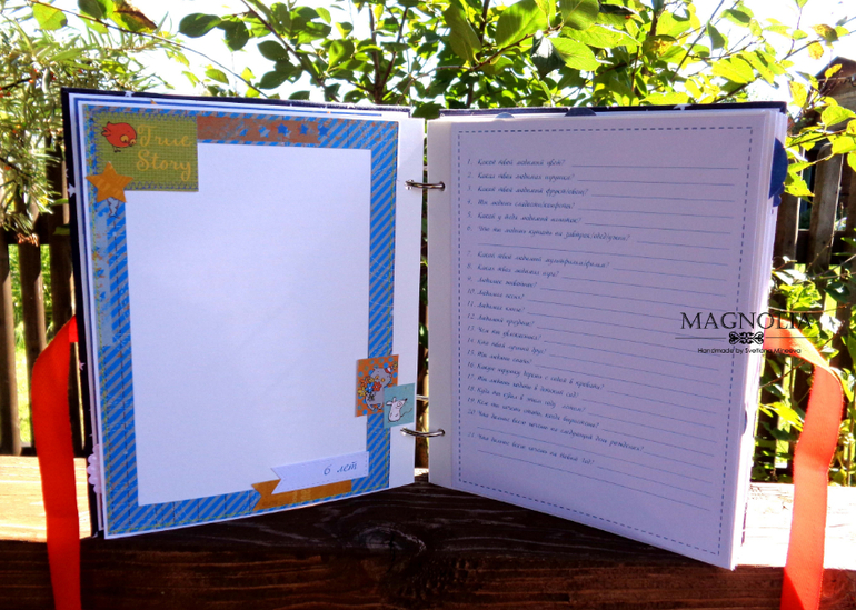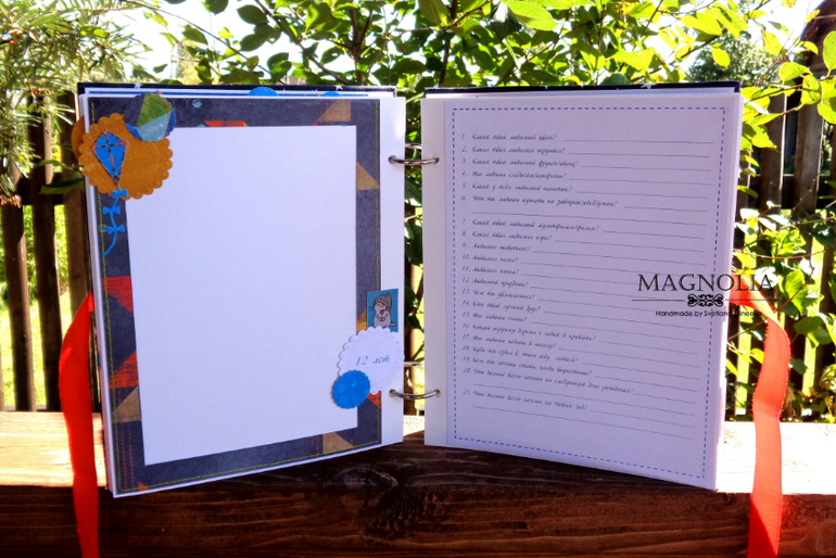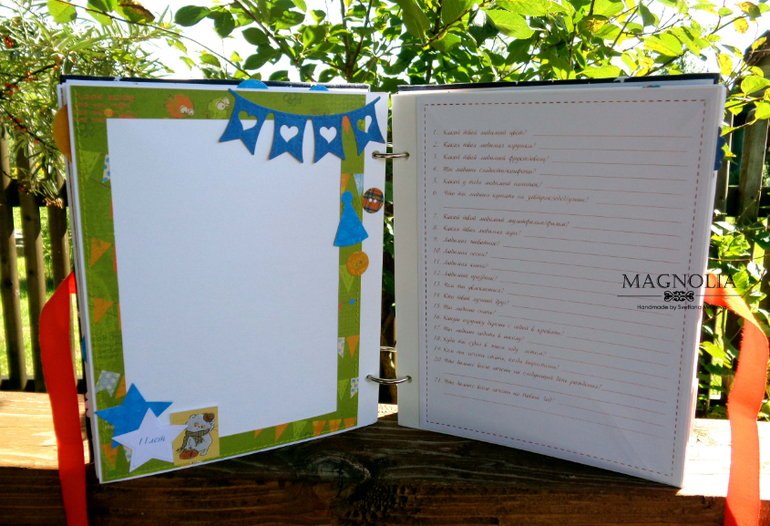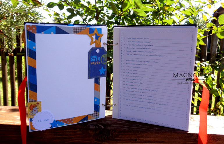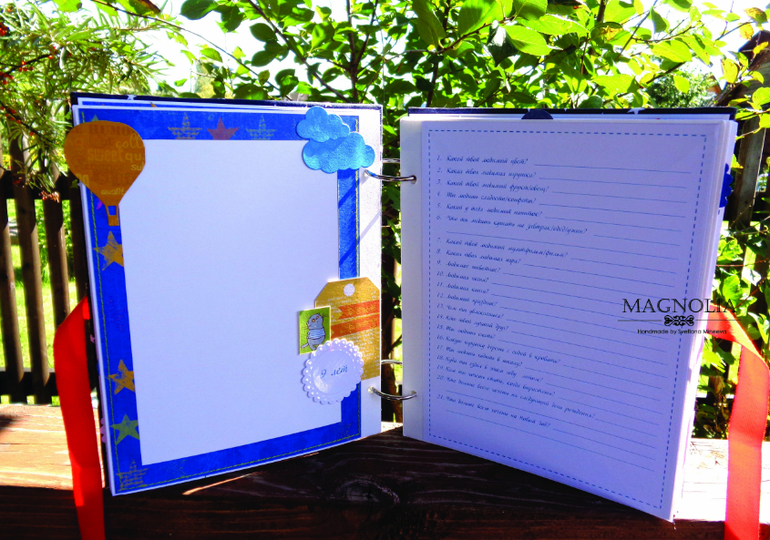 Фотоальбом-анкета для мальчика от 5 до 18 лет, формат 20*22 см, обложка мягкая тканевая (нат.хлопок), крепление на кольцах. Вмещает 14 фото формата 15*20 см