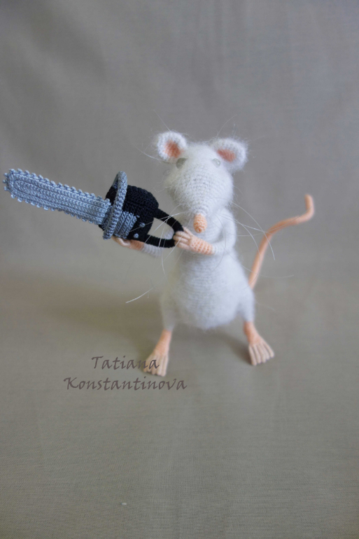 Амигуруми (вязаные игрушки)Вязаный крыс - мальчик....с бензопилой. У кого живут крысопарни думаю знают, что как и у любого подростка в месяцев 6-8 у крыс начинается гормональная перестройка и в этот момент у некоторых может снести голову, начинают кусаться - в крысоводческом сообществе это назвается "играет гормон". Вот на эту тему и получился такой крыс.