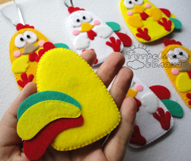 Все очень красиво и аккуратно!!! Подскажите, основа петушков состоит из 2-х деталей? Если да, то есть ли какая-то прослойка между нами? И еще. Вижу, что детали обшиты, наверное, вручную. А к основе они приклеены или вы их пришиваете в процессе обшивания? Заранее спасибо за ответ.