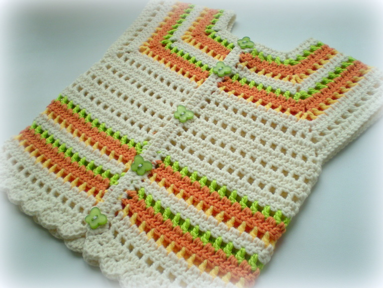 Вязание крючком (РАБОТЫ И СХЕМЫ)Из остатков пряжи Ярн Арт Джинс связался жилетик для малыша. Молочной ушел целиком моток , и немного разноцветных остатков. Крючок № 2,5.