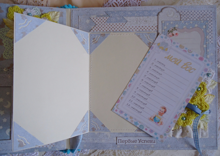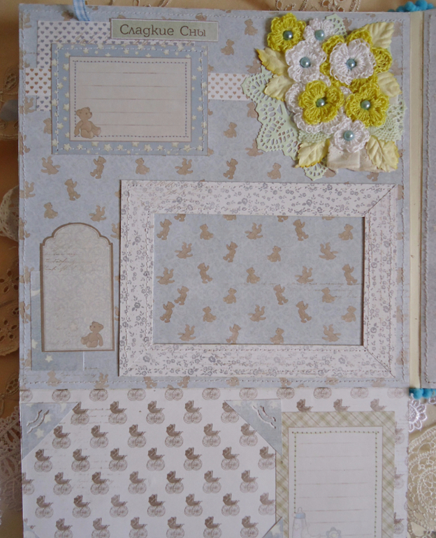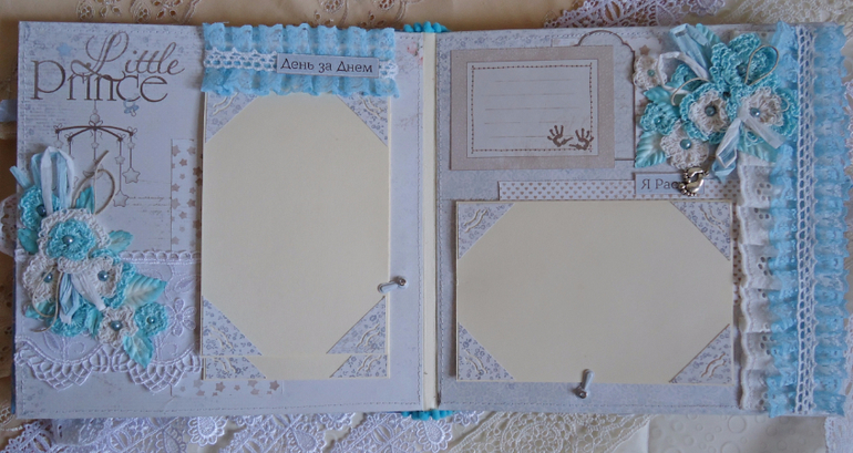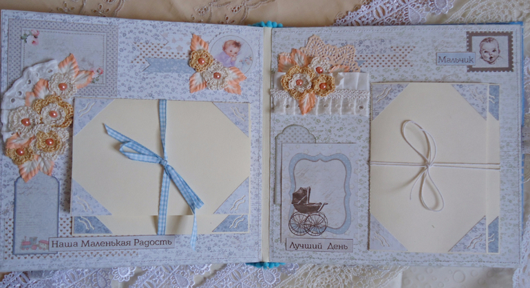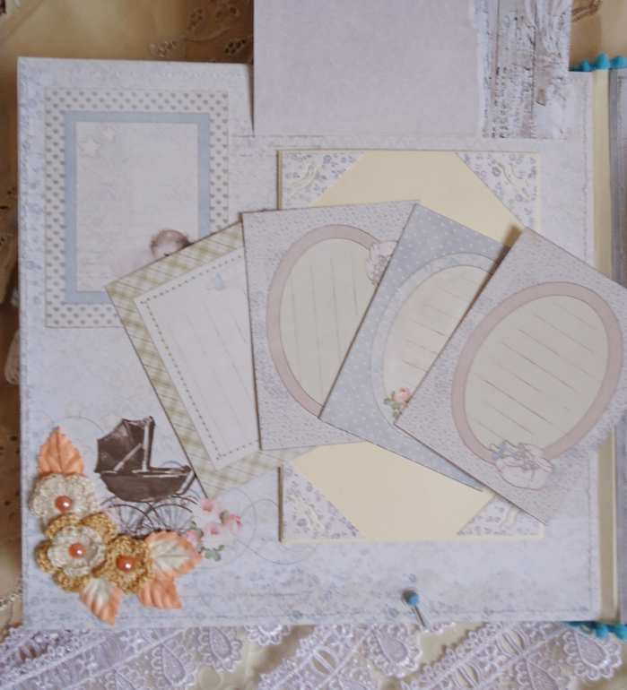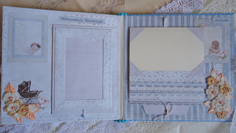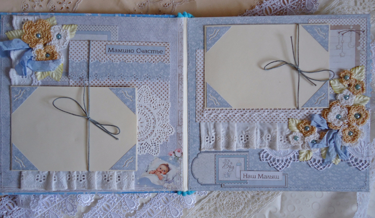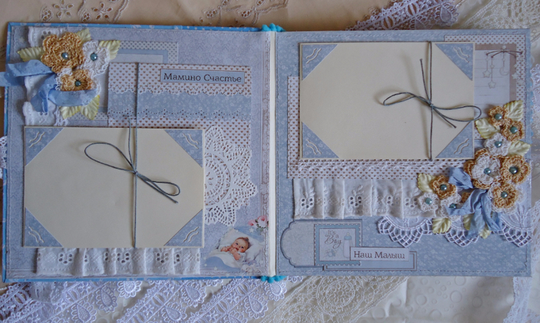 СкрапбукингСотворился новый шебби альбом для малыша.Альбомчик 24 на 24 см.Вместит 53 фото размером 10 на 15 см.В альбомчике много интересных конструкций,открывашек,кармашки,карточки и места для записей,метрики роста и веса,а также море кружева и вязанных элементов.