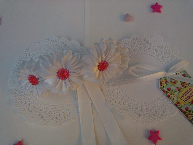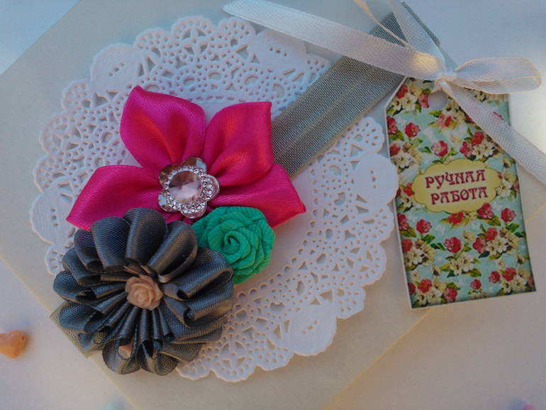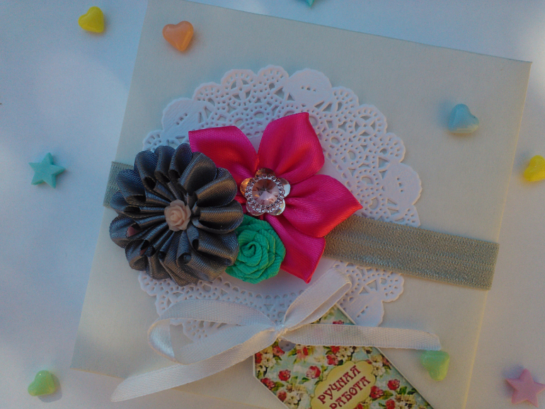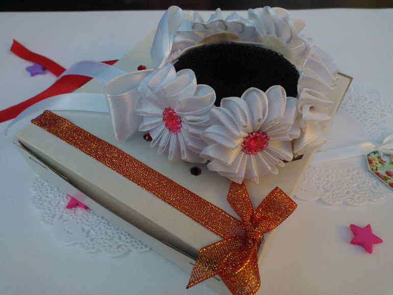 Резинка на пучок.Для маленького бублика всего 6 см.Цветочки с ленты 1.2 см.