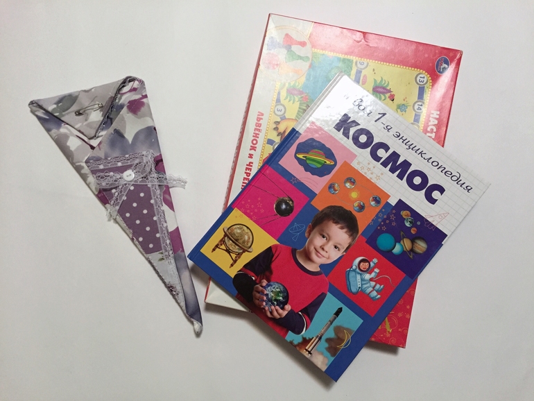 И еще подарки - игру, книжку и ножницы