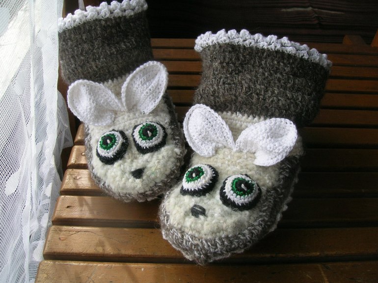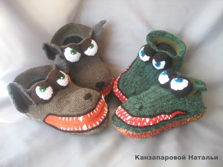 Вязание крючком (РАБОТЫ И СХЕМЫ)Носки для племянников. Любят ребята гоняться друг за другом по дому. А когда на ногах такие чудища - очень живописно получается.