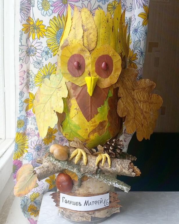 Ну вот Сову ребенок делал сам, даже бутылку сам разрезал, чтобы основу сделать, я только отметила где резать. Также горячий клей не доверяю из-за соображения безопасности, хотя думаю и с пистолетом Матфей бы справился.