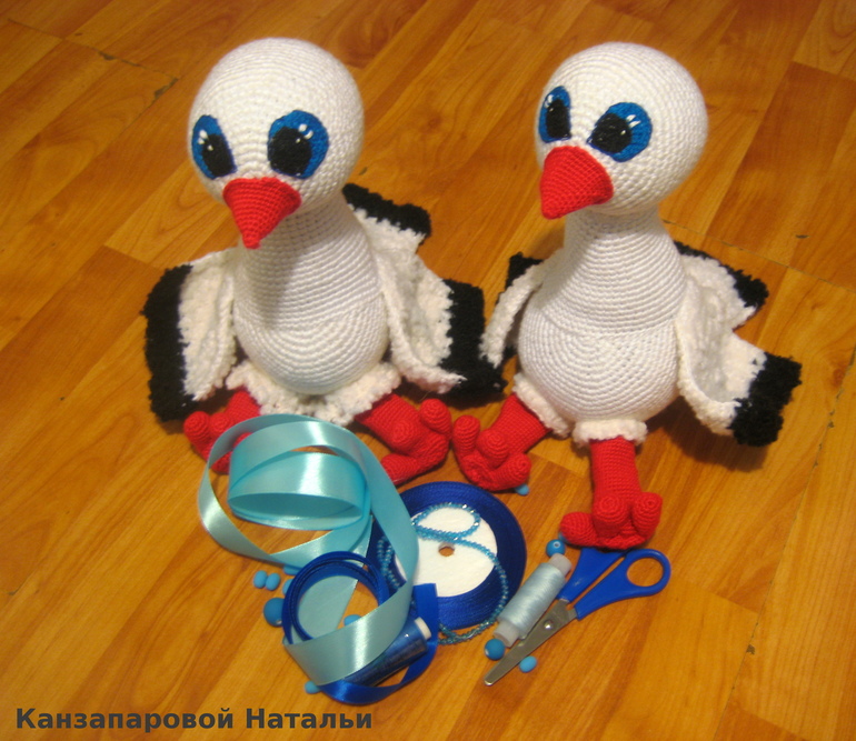 Амигуруми (вязаные игрушки)Связала аистят, которые вместе ожидали ребеночка; девочку-аиста - для беременной мамочки, чтобы вместе читать сказки, слушать музыку, перебирать пеленки и ползунки... мальчика-аиста - для врача, который помог появиться на свет малышу.