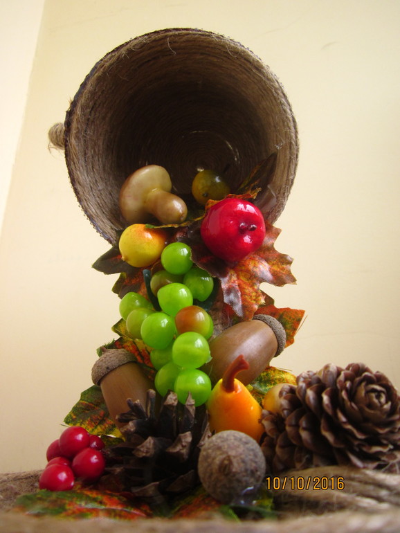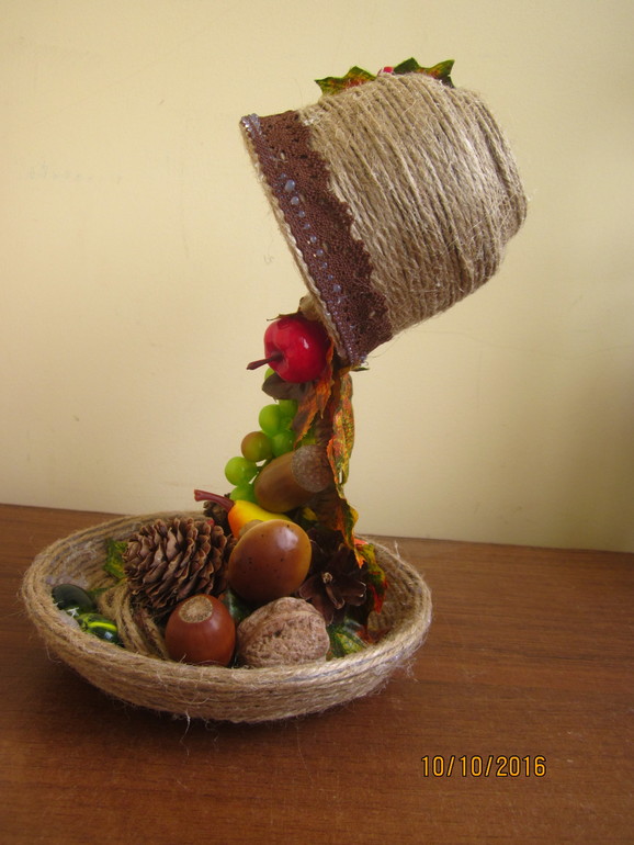 Поделки с детками.Воспитатели из садика попросили сделать поделку к празднику осени. Решила сделать такую "парящую" чашечку. Шишки, желуди, орехи(еще были каштаны, но они слишком крупные и в поделку не попали) - собирали с дочкой.