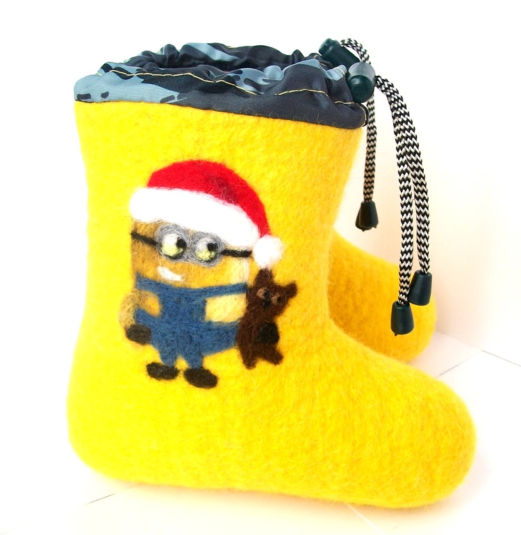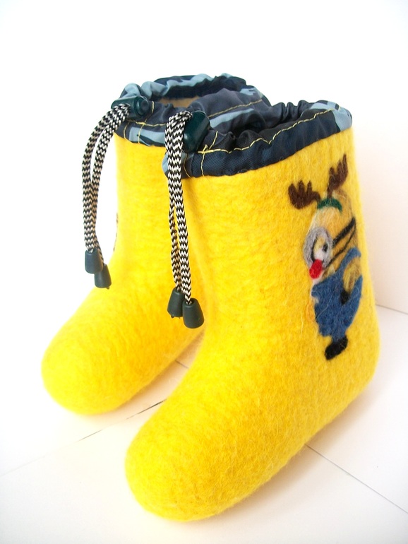 Рисунок из шерсти, привалян в технике сухого валяния. Утяжку сделала, чтобы снег в валенки не попадал, все малыши любят ползать по снегу! Вот будет не только тепло , но и сухо.