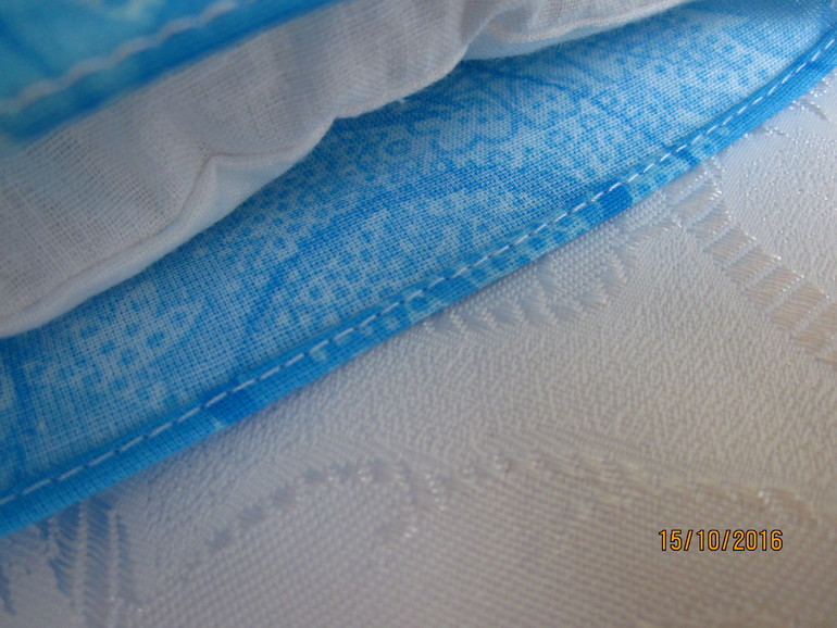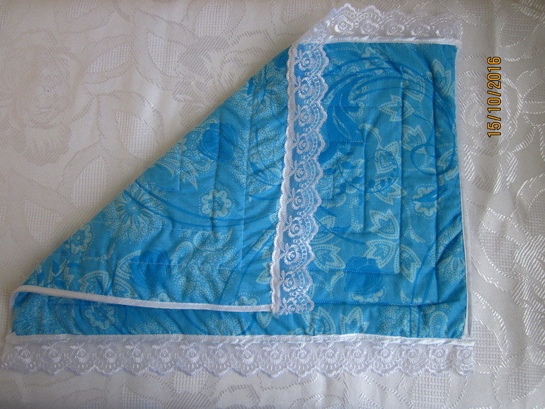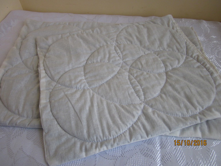 Сначала сделала одеяла с синтепоном, простегав ромбиками, но они получились очень жесткими. Потом взяла очень тоненькую белую ткань и ватин, простегала большими кругами.
