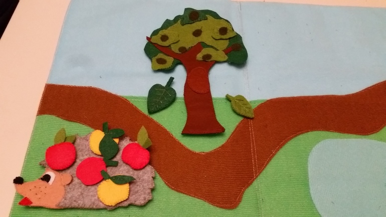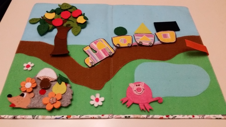 Развивающие игрушкиОзеро и дорожка пришита.остальные детали съемные.вариантов игры и развития с этой штукой просто море!!!! Впринципе можно даже липучки на детали не пришивать.и так держится.но с ними прочнее.