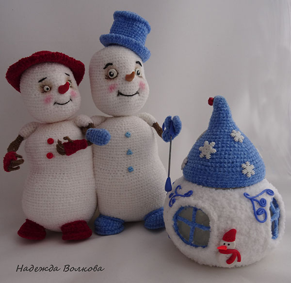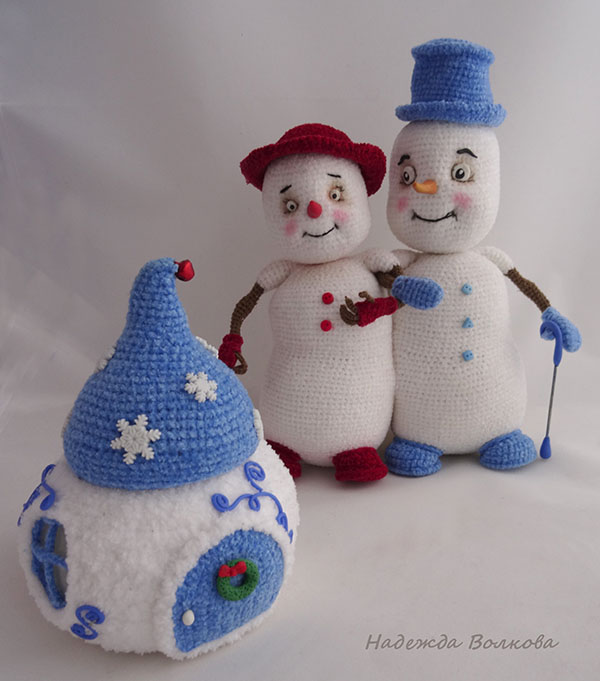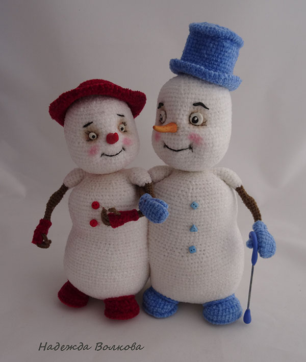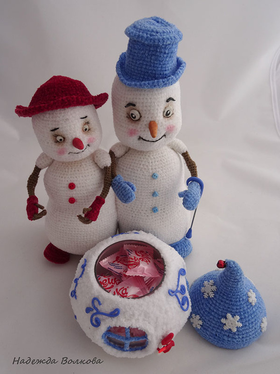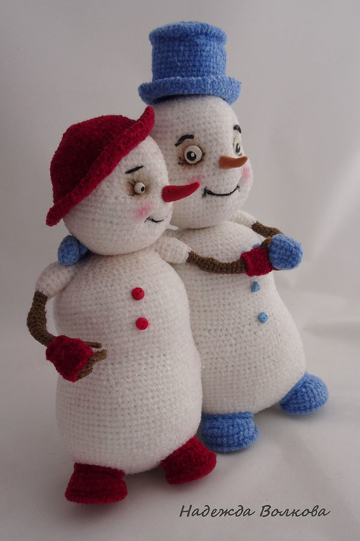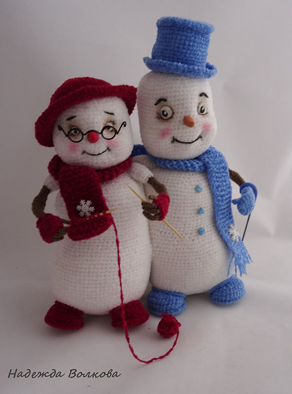 Амигуруми (вязаные игрушки)Снеговики-неразлучники, баба Шура и дедушка Паша. Прожили вместе уже много зим, но по прежнему любят, уважают и балуют друг друга