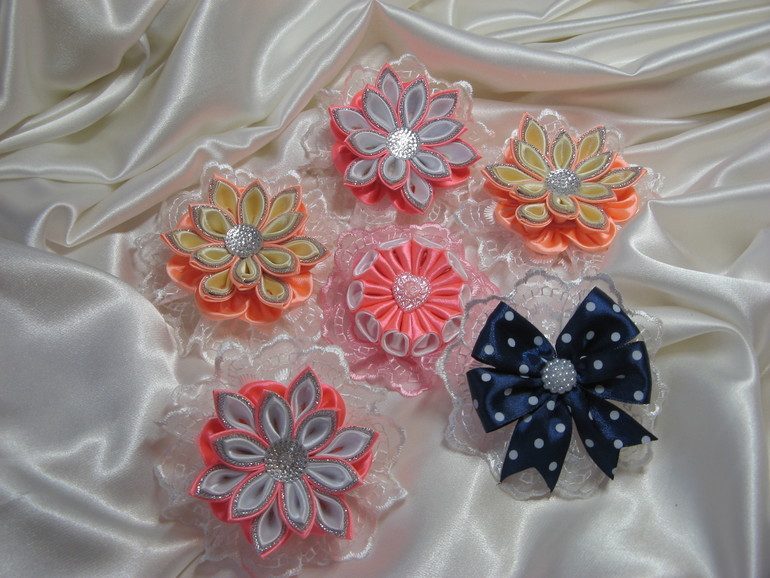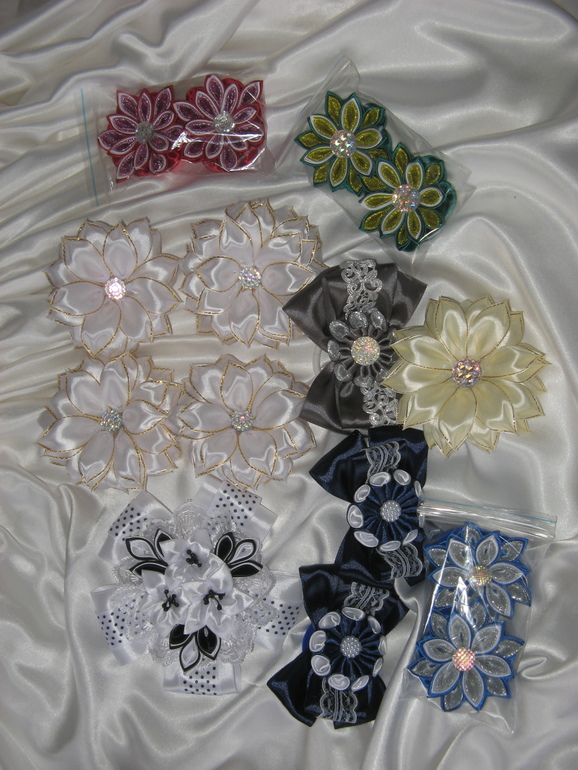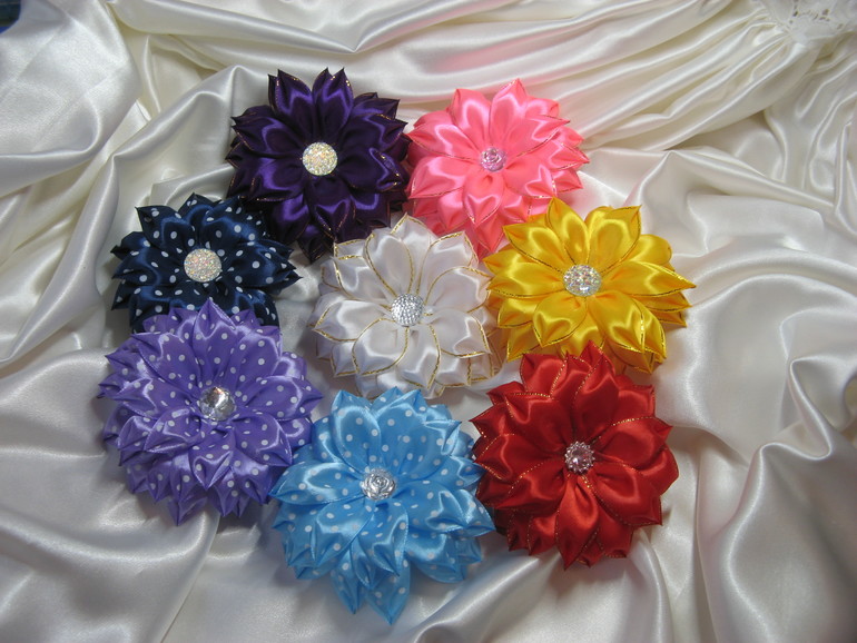 Цветы из ткани и форма. Канзаши. Украшения для волос.Очень вдохновили работы Марины Пастуховой и Алины Болобан. И вот мои работы.
