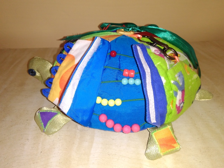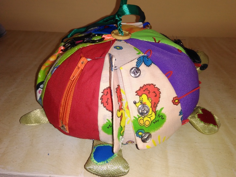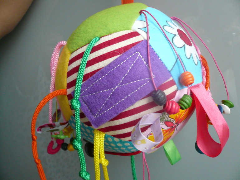 Как воспитатель яслей скажу что идея с мячом-шнуровкой, овощной грядкой и пальчиковым театром классная! Уместна...искалку не одобрят, т.к есть мелкие детали. Я своим лялькам шила коврик развивающий (если надо завтра сфоткаю и покажу), могу показать очень классную черепаху которую нам родительница сшила))) детям она нравится и они ее таскают+она на развитие мелкой моторики