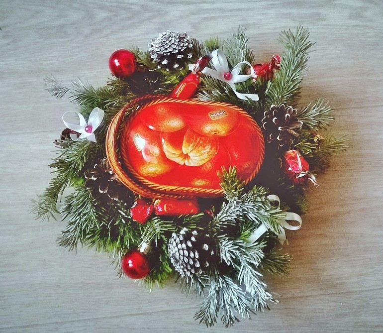 Новогодний подарок,но так же можно использовать как композицию на стол или подсвечник,просто вытащить коробочку чая и вуа ля ,композиция на новогодний стол ))))