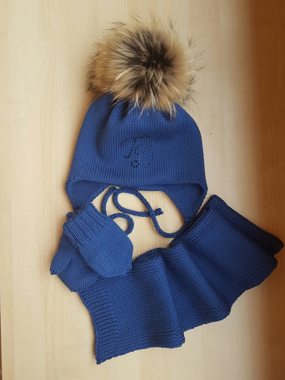 Мериносовый комплект вязала для малыша) шапочка и варежки двойные теплые)