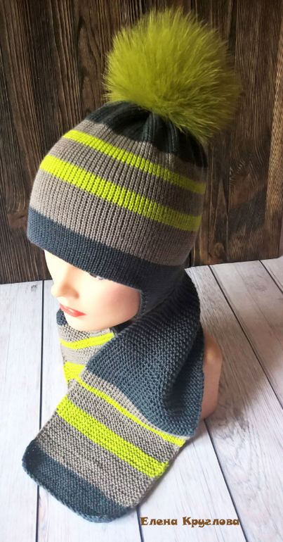 Очень красивый комплект, а сочетание цветов так просто отличное. Цвет помпона вообще супер ))))
