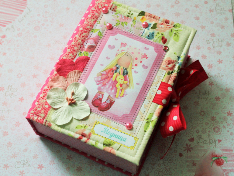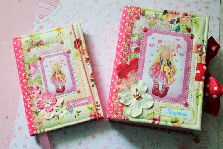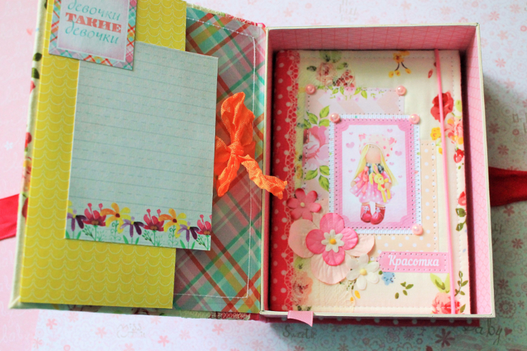 СкрапбукингНедавно сотворился вот такой набор для девочки/девушки, состоящий из коробочки и блокнотика А6